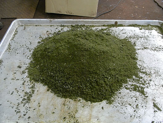 茶殻を解(ほぐ)しある程度粉砕する事により内部まで熱が行き渡り確実に乾燥されます。
