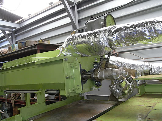 交差スクリューコンベア装置のトラフも加熱チューブにて加熱されています。